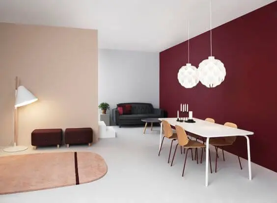 A combinação é especialmente eficaz em dentre as cores de tinta na parede dos quartos ou áreas de descanso, onde as paredes em marsala podem ser equilibradas com detalhes suaves presentes em almofadas, cortinas e quadros. O uso de pastéis também ajuda a criar um ambiente romântico e sereno que você pode aproveitar.